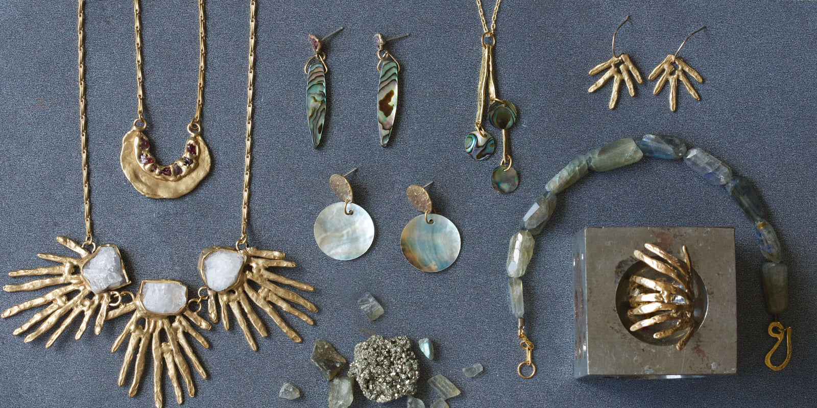 Each piece of jewelry is handcrafted in our NYC studio from start to finish by Emilie & her team of highly skilled, female artisans using recycled metals & raw, natural gemstones.