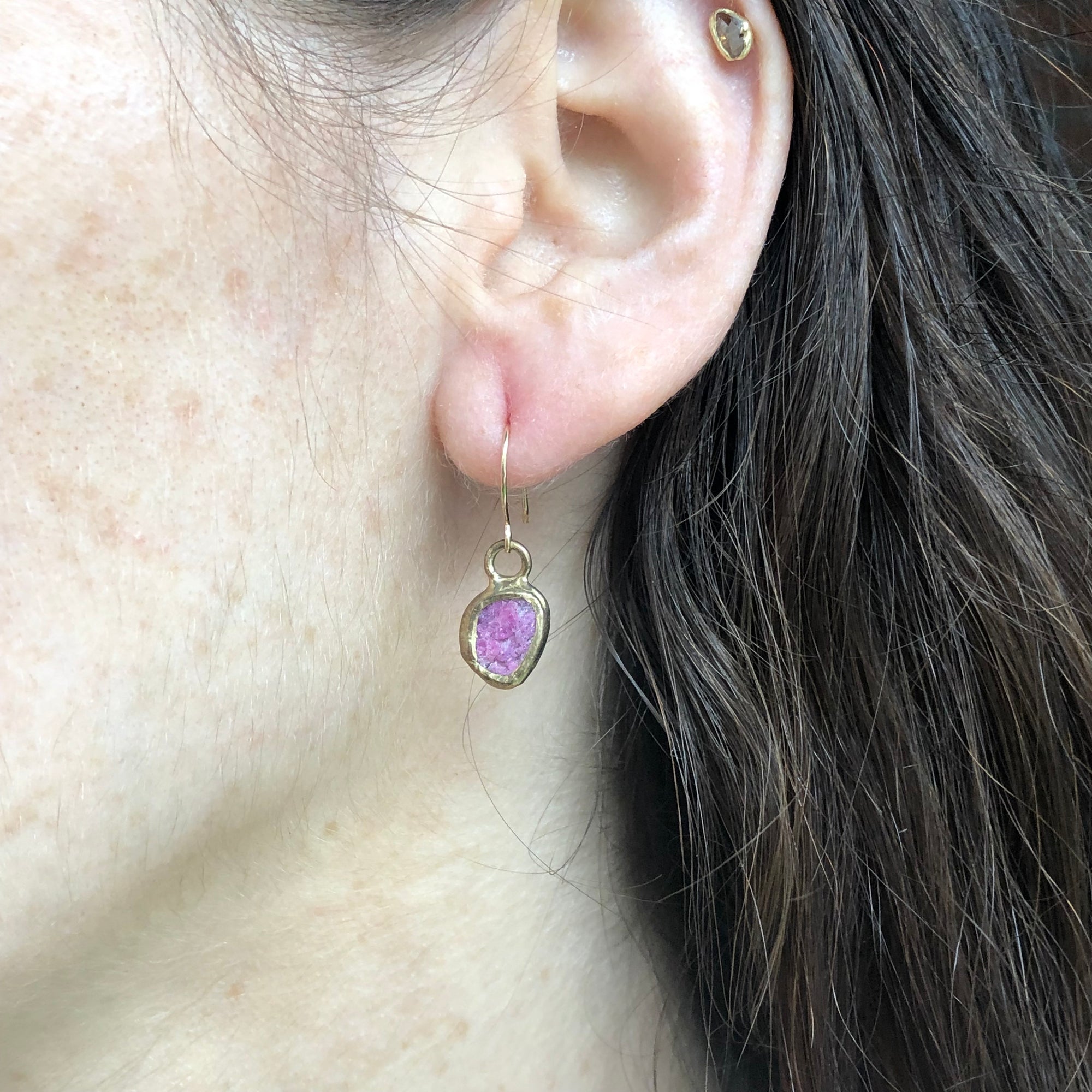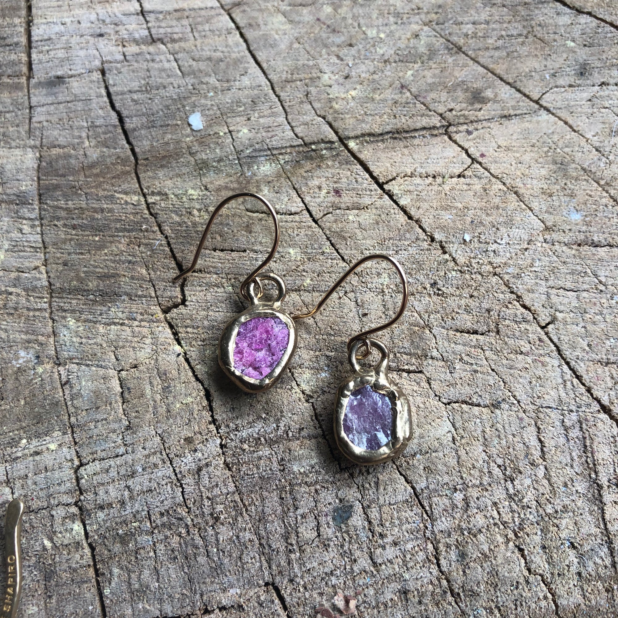 Inspired by the texture and hues of starfish all over the world's seabeds; Rubies areembedded in brass with handmade gold-filled earring wires.